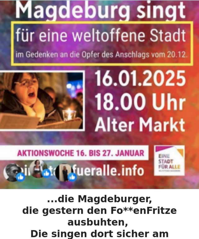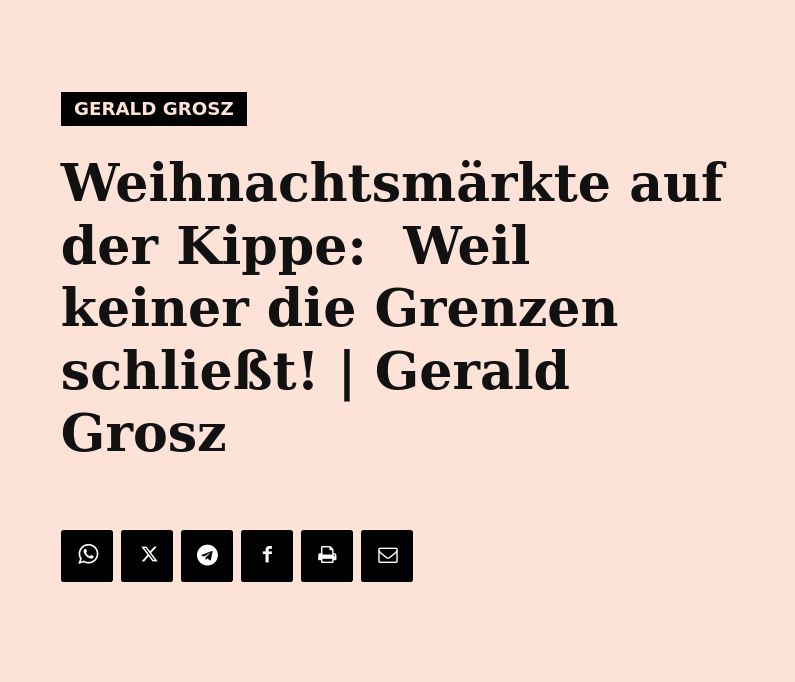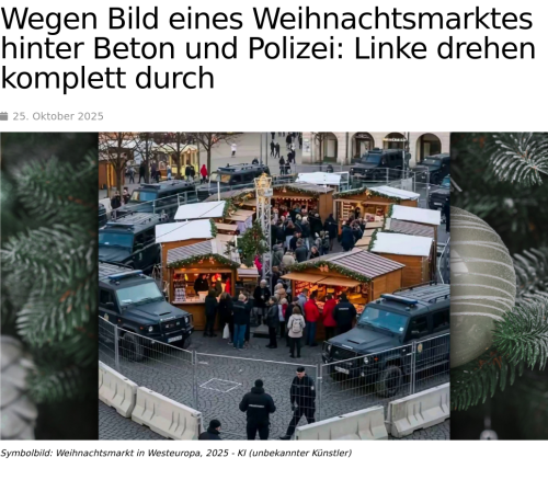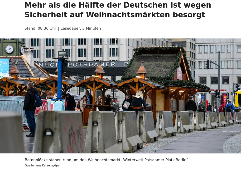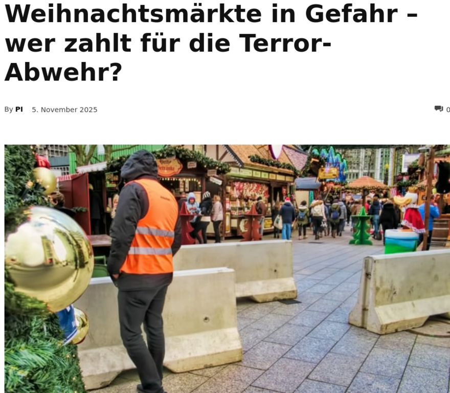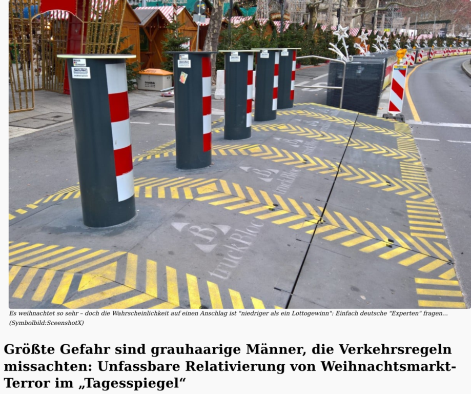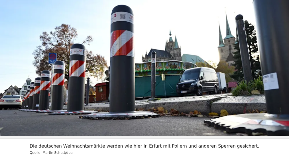 Der Staat will die Ursache nicht beseitigen, und täuscht Sicherheit vor, indem er die Weihnachtsmärkte/Feste einmauert!