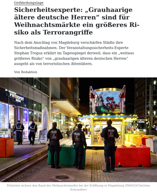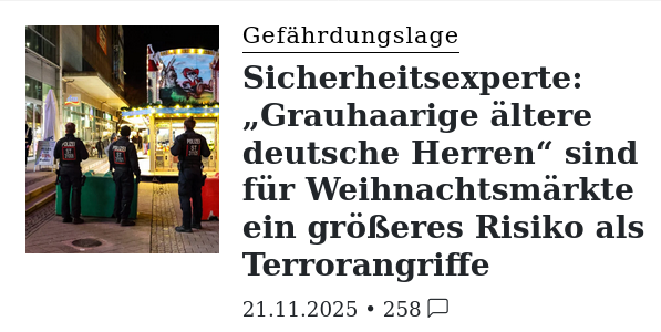 Wem möchtet ihr auf einem Weihnachtsmarkt lieber begegnen, einer Gruppe grauhaariger, alter Männer oder einer Gruppe Stadtbild? :-)