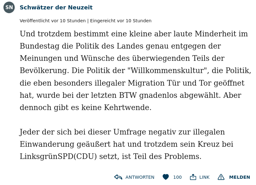 ...und oftmals kann ich den Irrsinn in diesem verkommenen 'schland nur noch mit bissigem Kommentar ertragen:
