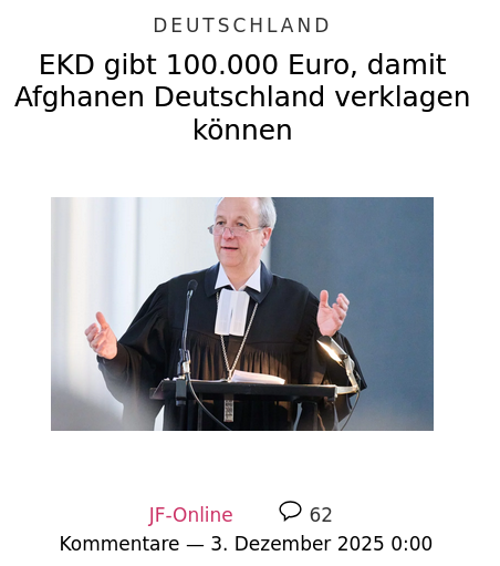 "Bischof Christian Stäblein, der Flüchtlingsbeauftragte der EKD, kündigte nun auch noch an, aus Kollekten 100.000 Euro für Klageverfahren zur Verfügung zu stellen."
