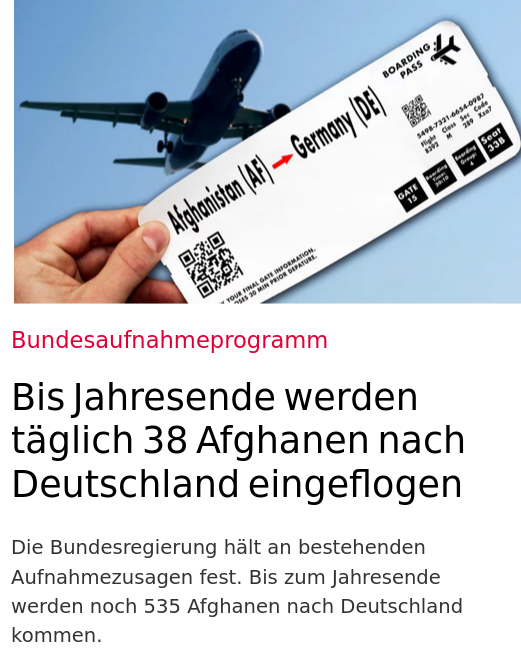 und ich will keinen einzigen Afghanen mehr in mein Land einreisen sehen !