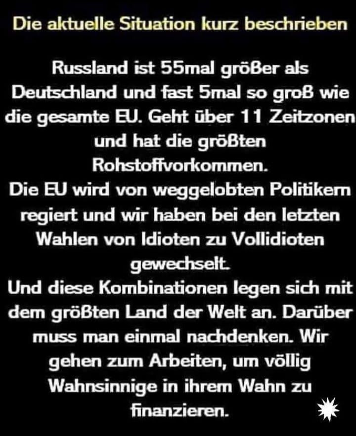 ..es ist so gruselig peinlich und ich schäme mich für diesen "unwerten WerteWesten", der mit seinen Gaunereien versucht, den russischen Bären zu betrügen und seine Schätze zu stehlen.....