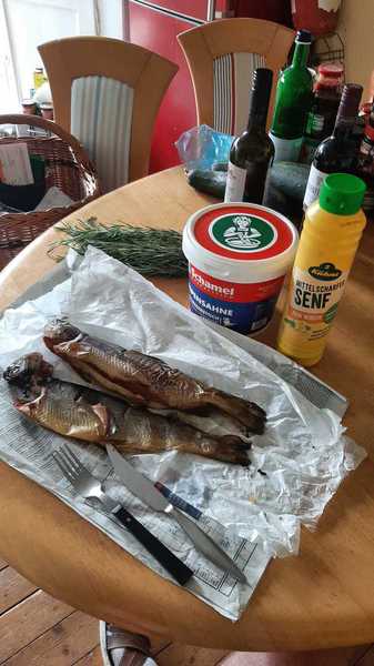 ...frisch geräucherte Odenwald - Forellen, noch warm aus dem Rauch.