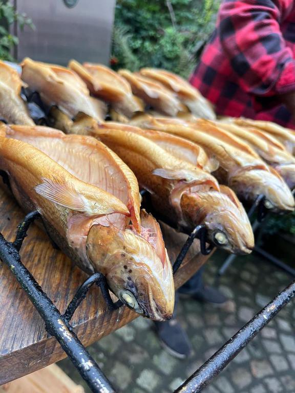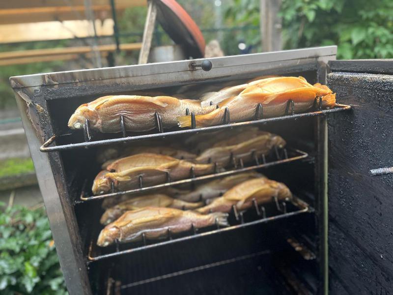 Auf Wunsch und Vorbestellung werden auch Bachsaiblinge oder Aal geräuchert.