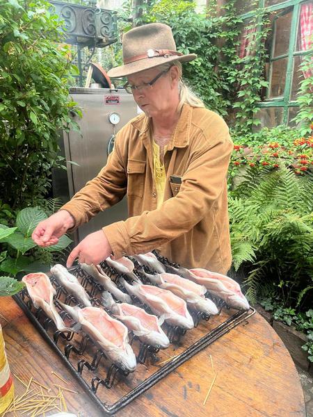 an das Thema Fliegenfischen und Natur anlehnend können sich die Besucher danach ab ca. 12:30 über meine frisch vor dem Kino geräucherten, ofenwarmen Odenwaldforellen hermachen...ein passender Abschluß, finde ich......Wiederholung wird nicht ausgeschlossen...:-)